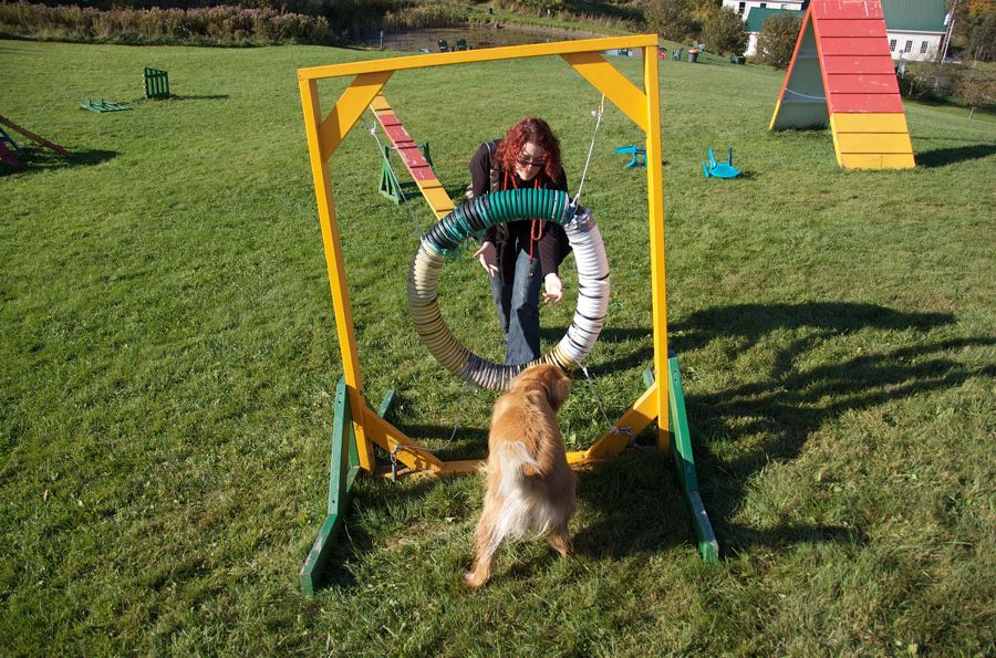 Honey did not want to jump through the dog-trick hoop